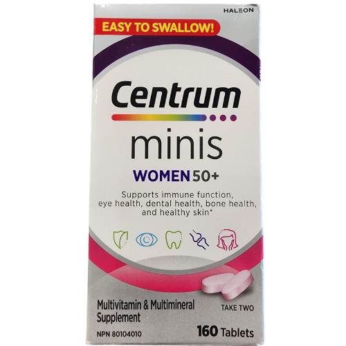 Centrum Minis Women 50+ (160 tablets) offers a compact multivitamin for women over 50, with smaller, easy-to-swallow tablets.