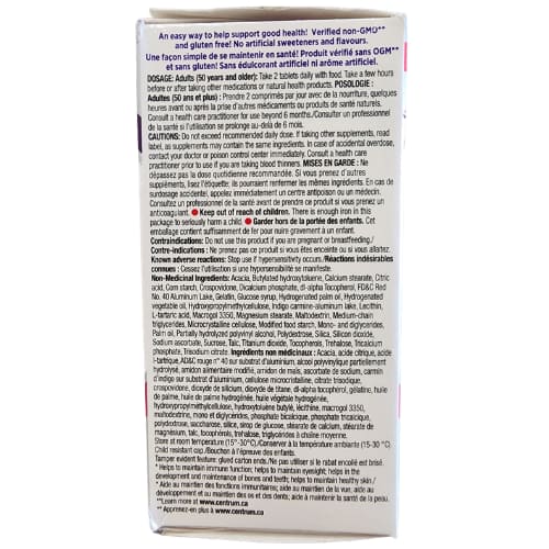 Adults women 50+ take 2 tablets daily with food. Take a few hours before or after taking other medications or natural health products.